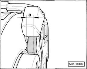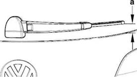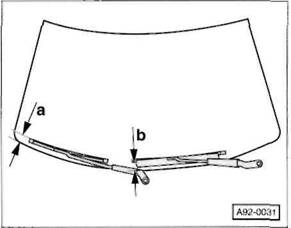 Abstand der Wischerblattspitzen zur Abdeckung des Wasserkastens an der Scheibenunterkante messen und mit Sollwert vergleichen: Ma -a/b- = 0 bis 10 mm.
