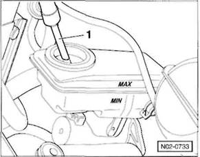 Steht das SpezialWerkzeug nicht zur Verf gung, destilliertes Wasser bis zur u eren MAX-Markierung -Pfeilauff llen.