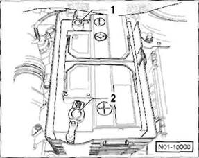 Batterieklemmen -1- und -2- hin- und herbewegen und festen Sitz pr fen, gegebenenfalls Befestigungsmuttern nachziehen. Anzugsdrehmoment: 6 Nm.