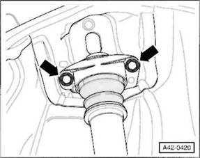Schraubenfeder langsam entspannen, dabei muss die obere Federauflage in die F hrung oben an der Karosserie eingreifen.
