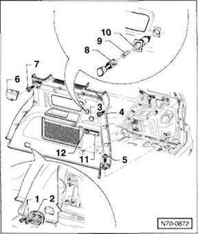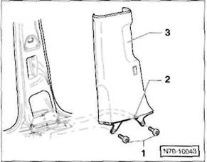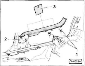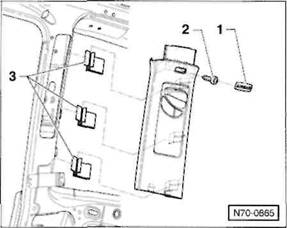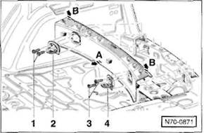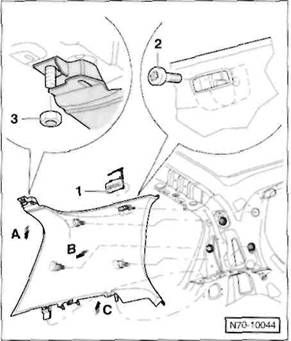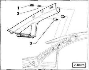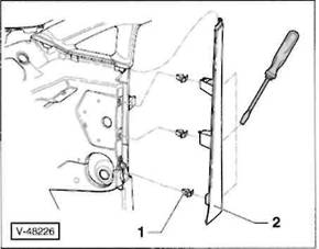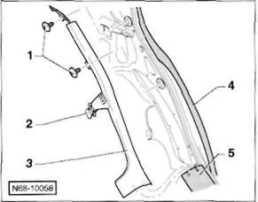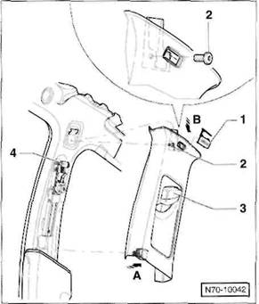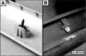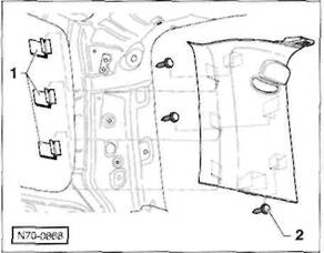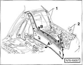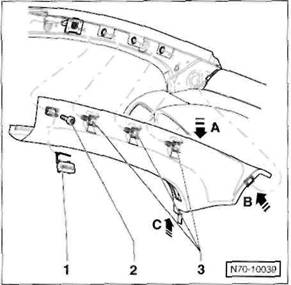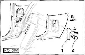 Clip/Federklammer an der R ckseite der Verkleidung: Verkleidung so an den Cliphalterungen l sen, dass der Clip -A- beziehungsweise die Federklammer -B- aus der Bohrung in der Karosserie herausgezogen wird.