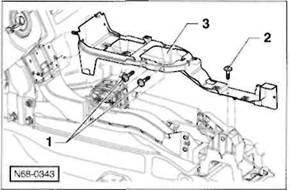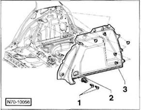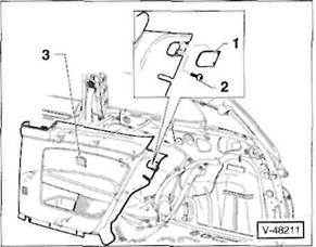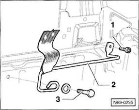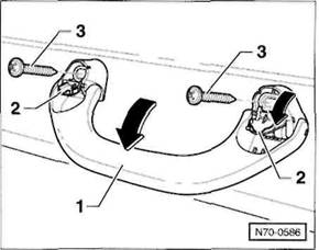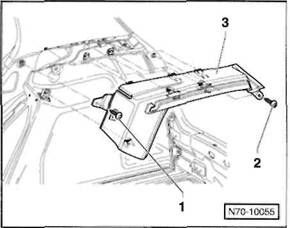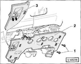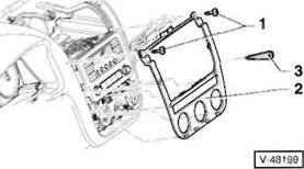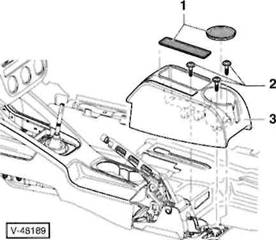 3 Schrauben -2- herausdrehen, hintere Mittelkonsole -3- aus den Aufnahmen am Boden l sen, nach vorne ber den Handbremshebel f hren und nach oben herausheben.