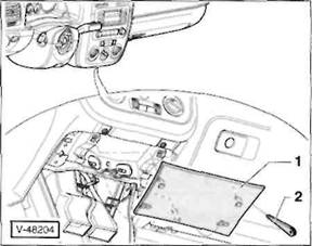 Achtung: Vor dem Trennen der Steckverbindung elektrostatische Aufladung abbauen, dazu kurz den Schlie b gel der T r oder die Karosserie anfassen. Unbedingt Air-bag-Sicherheitshlnweise befolgen, siehe Seite 148. 6-2 Schrauben, 4,5 Nm