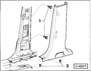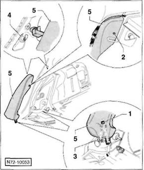 Seitenpolster mit Seiten-Airbag: Abdeckkappe abhebein und Schraube -2- herausdrehen.