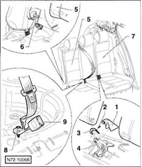 Schraube -8- herausdrehen und Sicherheitsgurtschloss -9-vom Fahrzeugboden abnehmen.