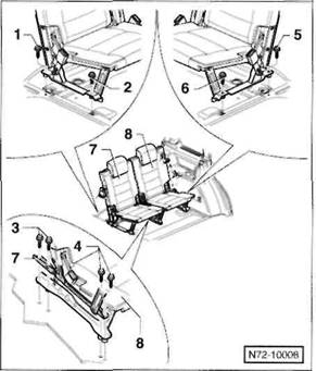 Linke Lehne -7- aus dem Mittellager aush ngen, an der Au enseite vom Haltebolzen abziehen und aus dem Fahrzeug nehmen.