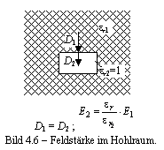 Die kleine Hohlräume haben einen bedeutenden Einfluss auf die maximal erlaubte mittlere Feldstärke im Dielektrikum des Kabels. In Hohlräumen ist die Feldstärke 3 5 mal grösser als im Dielektrikum (Bild 4.6) weil die Feldkonstante des Dielektrikum er