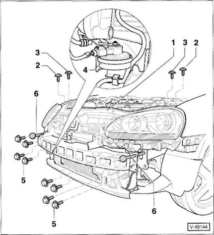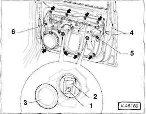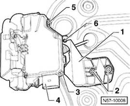 Hupe -4- zusammen mit Halter rechts vom L ngstr ger abschrauben, siehe Seite 65.