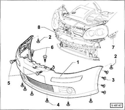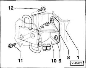 Hinweis: Der Arbeitsablauf erfolgt beim TOURAN in gleicher Weise. Dabei Hupe auf der linken Seite vom L ngstr ger abschrauben.