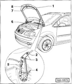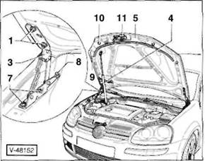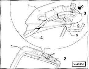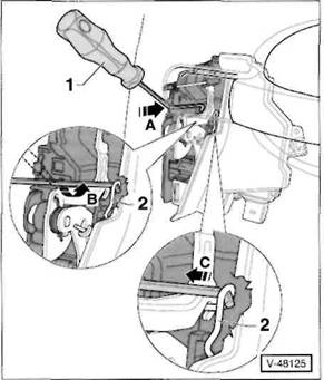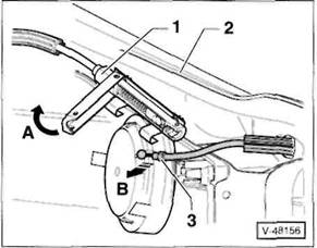 Seilzug am Motorhaubenschloss aush ngen, siehe Kapitel Motorhaubenschloss aus- und einbauen