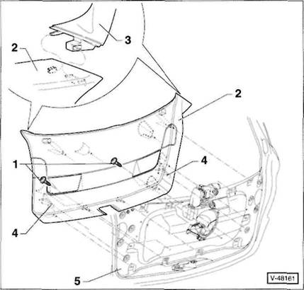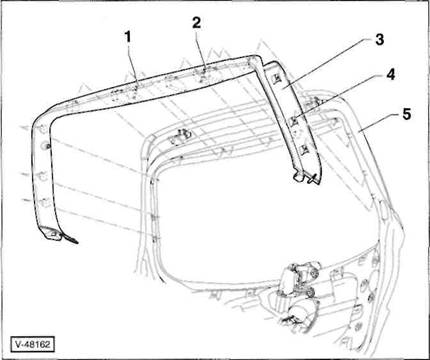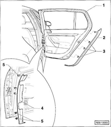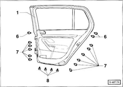 Hinweis: Zum L sen von T r- und Heckklappenverkleidungen einen Kunststoffkeil verwenden, zum Beispiel HAZET 1965-20. Clips, die beim Ausbau von Verkleidungen besch digt werden, immer erneuern.