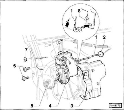 Seilzug -4- am T r ffner -5-aush ngen und Verkleidung abnehmen.