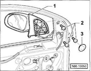 2 Schrauben -2- herausdrehen und Spiegelgeh use -1-nach oben vom Spiegeltr ger-3- abziehen.