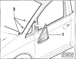 Seitenfenster -1- in den Fensterausschnitt setzen und mit den Muttern -2- leicht anschrauben.