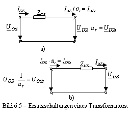 Für die Lastflussberechnung wird der Transformator meistens nur durch seine Kurzschluschimpedanz nachgebildet. Man benutzt die Ersatzschaltungen, die im Bild 6.5 gezeigt sind.