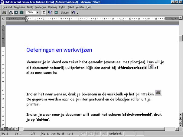 document natuurlijk uitprinten. Kijk dan eerst bij Afdrukvoorbeeld