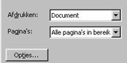 Bij het vakje opties links onderaan het menu afdrukken kunnen er nog verschillende mogelijkheden ingesteld worden. Je zal hier niet gauw wat van gebruiken en als je het toch wilt gebruiken kan je de mogelijkheden gewoon aanklikken.