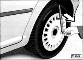 Radschrauben V4 Umdrehung lockern, nicht abschrauben. Achtung: Dabei muss das Fahrzeug auf dem Boden stehen, ein Gang eingelegt und die Handbremse angezogen sein. Zum L sen keinen Drehmomentschl ssel verwenden.