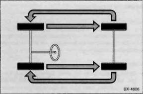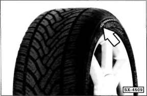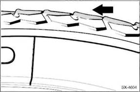 Hinweis: Laufrichtungsgebundenes Reserverad bei einer Reifenpanne nur vor bergehend entgegen der Laufrichtung montieren. Insbesondere bei N sse empfiehlt es sich, die Geschwindigkeit den Fahrbahnverh ltnissen anzupassen.