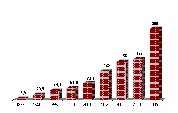 Umsatzsteigerung um 74,5 Prozent von 177 Mio. Euro auf 309 Mio. Euro