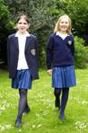 4) Auf dem bild ist zwei Mädchen. Sie hat an blaue Rocke, weiße Hemde und blaue Jacke an.