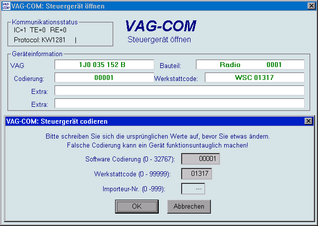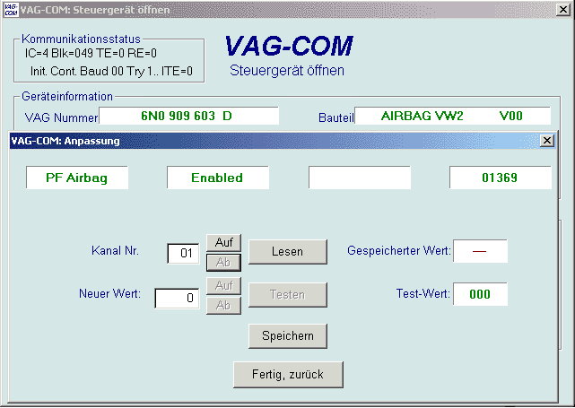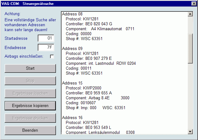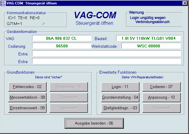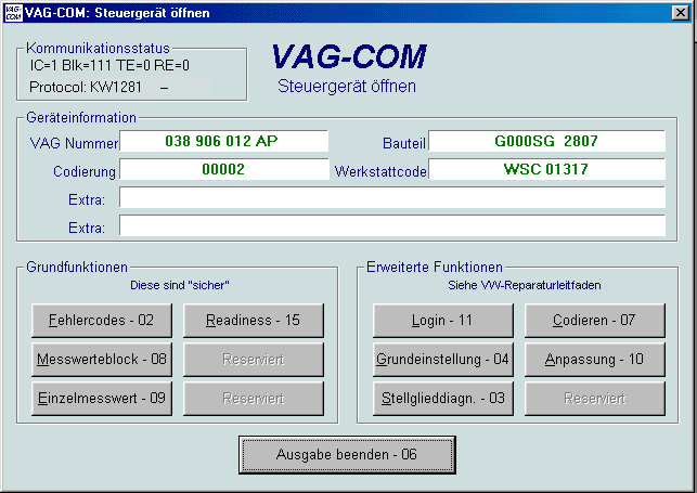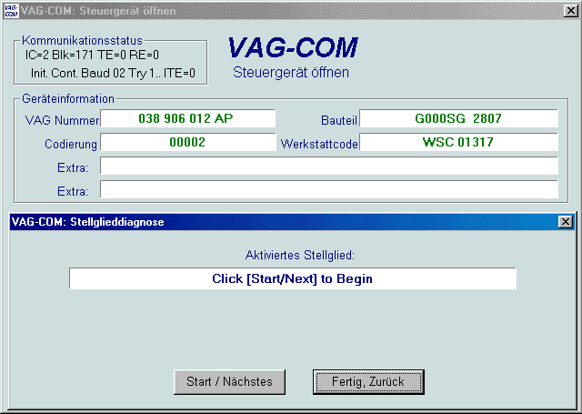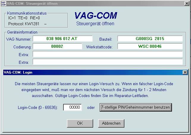 wenn VAG-COM versucht, eine Kommunikation mit einem Steuergerät aufzubauen.