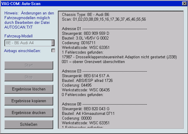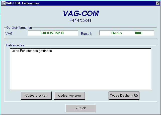 Auf diesem Bildschirm zeigt VAG-COM die Fehlercodes. Das