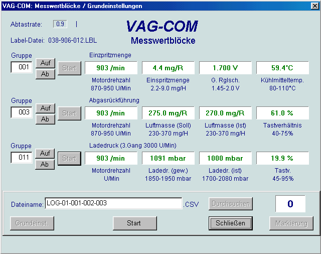 Einzelmeßwert (Funktion 09 des VAG