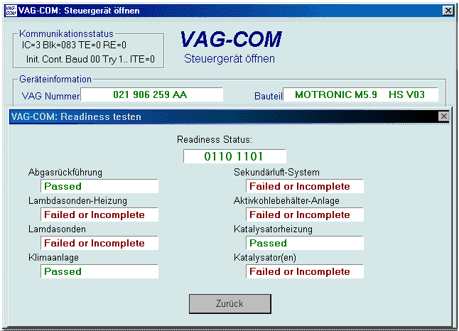 Readiness prüfen (Funktion 15 des VAG