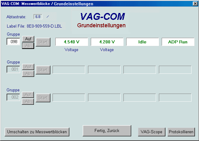 Grundeinstellungen (Funktion 04 des VAG