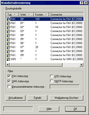 Für den Einsatz eines Smarthost Servers / Bridgehead Servers ist ein separater SMTP-Connector über den System Manager anzulegen (Routing: SMTP:*;1). Für das korrekte Routing von systemfremden Nachrichtentypen (FAX, SMS, VOX) darf im virtuellen Server für SMTP kein Smarthost angegeben werden. Die Funktionalität des Routings an den Smarthost Server übernimmt dann der zusätzliche SMTP-Connector. Faxe und andere systemfremde Nachrichtentypen werden nun korrekt geroutet.