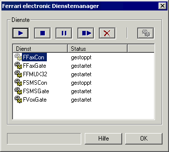 Die Dienste FFaxGate, FSMSGate oder FVOXGate lassen sich nicht starten. Es kommt die Fehlermeldung: "Dienstfehler 1066: Der Dienst konnt wegen einer fehlerhaften Anmeldung nicht gestartet werden."