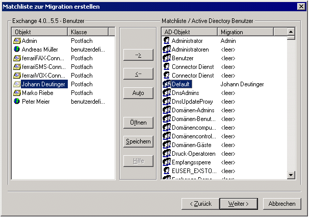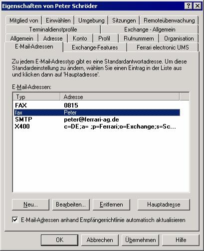 4.1 Die Benutzerzuordnung im ferrariFAX-Exchange Connector