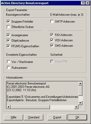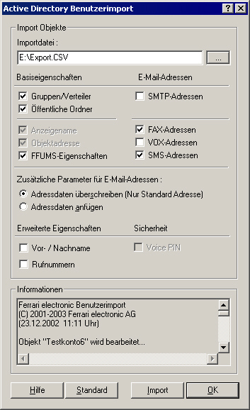 5. Benutzereigenschaften des MS Exchange Server 5.5 Import/Export mit dem Tool FFEIT