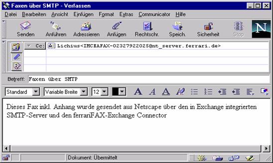 3. Die Benutzung des ferrariFAX- Exchange Connectors über einen SMTP - Client