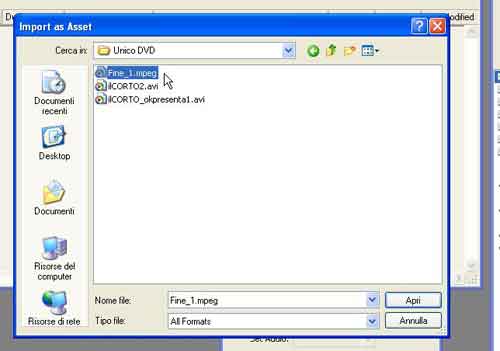 dobbiamo selezionare il file montato, selezionando: File e poi: Import as Asset: