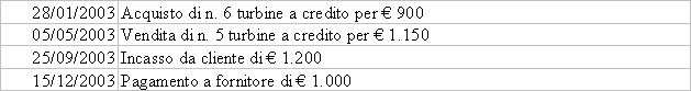 Nel corso dell’esercizio 2003, la società effettua le seguenti operazioni (in €/000)