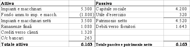 L’impresa Calvi S.r.l., depositaria della formula di una lozione per la crescita dei capelli, presenta al 31 dicembre 2001 la seguente situazione patrimoniale.