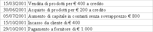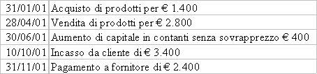 b) rilevare le operazioni dell’esercizio 2001 mediante l’utilizzo dei mastrini;