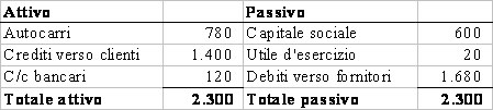 Al 31 dicembre 2000 tale società presenta la seguente situazione patrimoniale (in €/000)