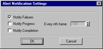 Se un lavoro che ha come tipo di output un file AVI, FLI, FLC o CEL viene arrestato per un qualche motivo (per disattivarlo o perché si è interrotto il funzionamento di una macchina), la ripresa del rendering del file ricomincia dal primo fotogramma. Non è possibile accodare fotogrammi in seguito a questi tipi di file.