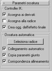 Vedere Controller IK per una descrizione dettagliata del modo di impostazione e di utilizzo del nuovo sistema IK e dell'interrelazione con le impostazioni di Ossatura.
