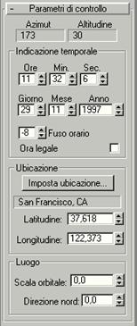 Luce solare crea e anima una luce direzionale che segue l'angolazione e lo spostamento del sole sulla terra in un luogo specifico in base alle coordinate geografiche corrette.