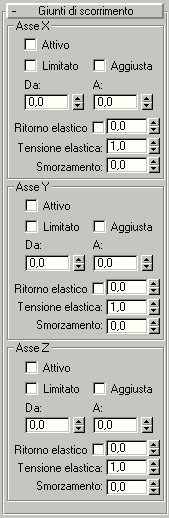 Se l'opzione è selezionata, l'asse è limitato e l'oggetto può spostarsi o ruotare entro l'intervallo stabilito dai campi Da e A.