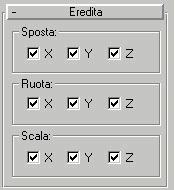 XYZ: Disattivare uno degli assi nelle aree Sposta, Ruota o Scala per impedire la trasmissione ereditaria.