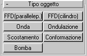 Gli space warp basati su modificatore vengono creati esattamente come tutti gli altri space warp. Essi sono elencati nel pannello Crea come sottocategoria degli Space Warp. Dato che sono tutti oggetti con tipologia a parallelepipedo, il mouse viene usato nella finestra di visualizzazione nel modo previsto per la creazione di una primitiva Parallelepipedo. Tuttavia, a differenza dei modificatori standard, gli space warp non presentano livelli Sub-oggetto.