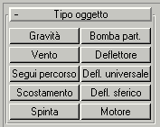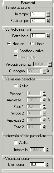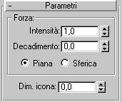 Newton/Libbre: Queste opzioni specificano le unità di forza usate dal campo incrementatore Forza base. Una libbra corrisponde a circa 4,5 Newton, e un Newton è pari a un chilogrammo per secondo al quadrato. Quando Spinta viene applicato ai sistemi particellari, questi valori hanno solo un significato soggettivo dal momento che molto dipende dai fattori di peso costruiti nel sistema particellare e dalla scala di tempo usata dal sistema particellare. Tuttavia, quando lo space warp viene impiegato con l'utilità Dinamica, il valore elencato è esattamente il valore usato.