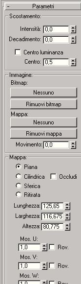Per i parametri specifici per un particolare tipo di luce, vedere la relativa descrizione.