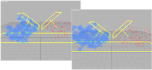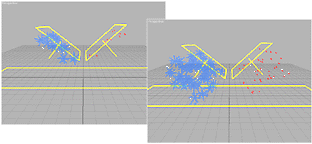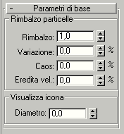 Rimbalzo: Determina la velocità con la quale le particelle rimbalzano allontanandosi dal deflettore. A 1,0, le particelle rimbalzano alla stessa velocità con cui colpiscono. A 0, esse non vengono deviate affatto.