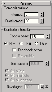 Giri massimi: Viene usata solo quando è selezionata la casella Feedback. Specifica i giri massimi prima che sia attivato il Feedback. La velocità viene specificata in unità percorse per fotogramma.